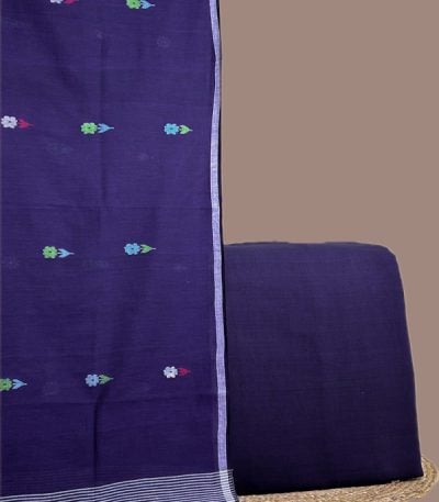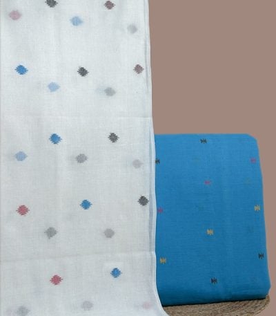 Blue – 2pc Handloom Cotton Dupatta and Handloom Soft Cotton Top Fabric Set