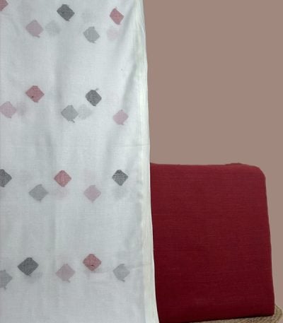 Red – 2pc Handloom Cotton Dupatta and Handloom Soft Cotton Top Fabric Set