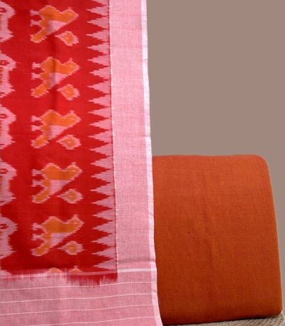 Orange – 2pc Ikkat Cotton Dupatta and Handloom Soft Cotton Top Fabric Set