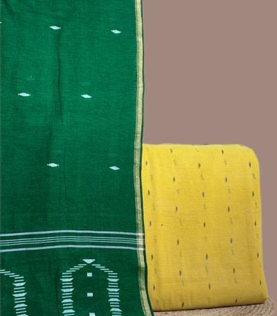 Yellow – 2pc Handloom Cotton Dupatta and Handloom Woven Design Top Fabric Set