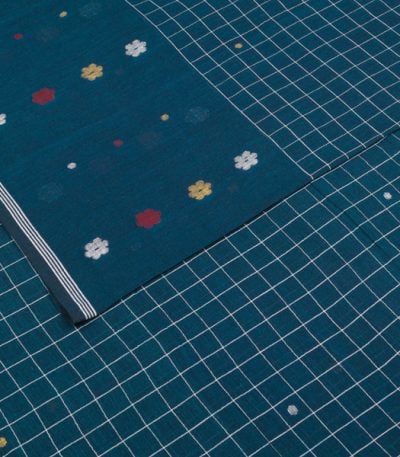 Yale Blue Handloom Intricate Border Flowy HandLoom Pure Soft Cotton Fabric