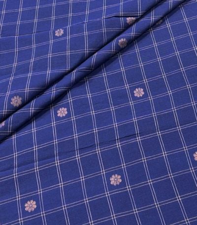 Iris Blue Checkered Woven Design Flowy HandLoom Pure Soft Cotton Fabric