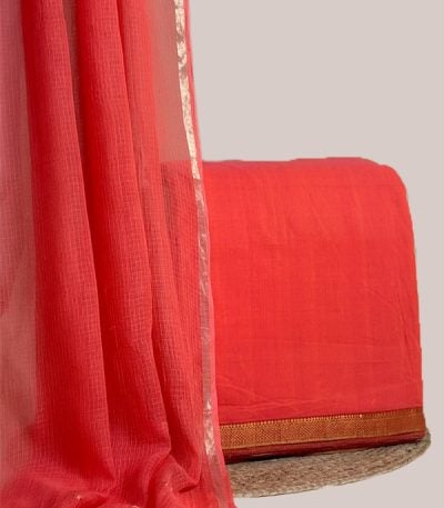 Orange – 2pc Kota Doria Dupatta and Mangalgiri Zari Border Handwoven Pure Cotton Set