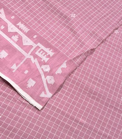 Blush Pink Handloom Intricate Border Flowy HandLoom Pure Soft Cotton Fabric