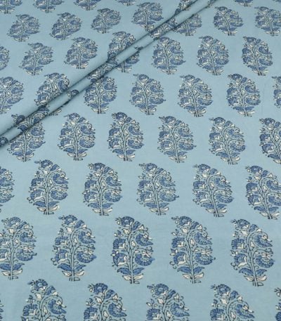 Blue – Neel Vatika Buti Ajrakh Cotton Blockprint Fabric