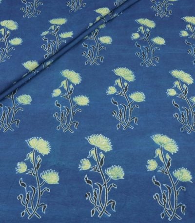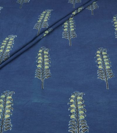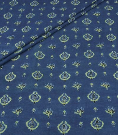 Blue – Indraneel Pankhuri Vriksha Ajrakh Cotton Blockprint Fabric