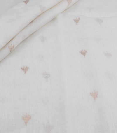 White – Premium Soft Linen Handloom Woven Zari Motif Fabric