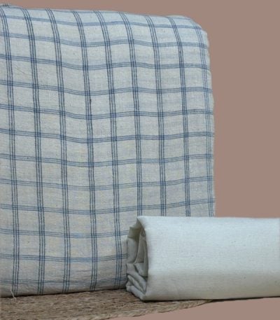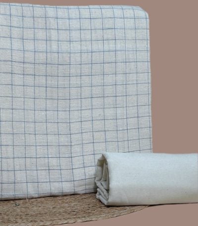 White – 2pc Kala Cotton Checkered Top Fabric with Handloom Cotton Bottom Fabric Set