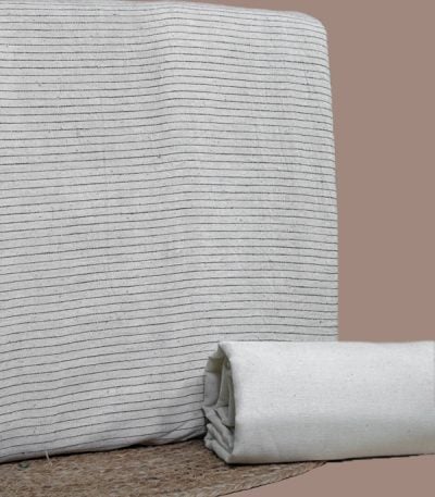 White – 2pc Kala Cotton Stripes Top Fabric with Handloom Cotton Bottom Fabric Set