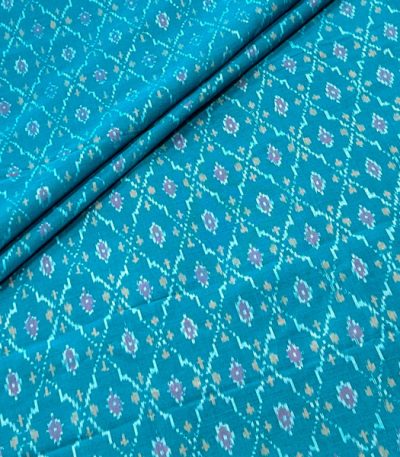 Ocean Blue Authentic Handwoven Soft Silk-Cotton Ikkat Fabric