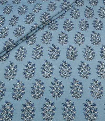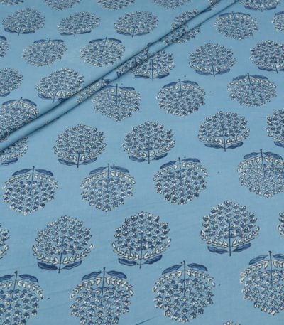 Blue – Neel Pushp Vriksha Ajrakh Cotton Blockprint Fabric