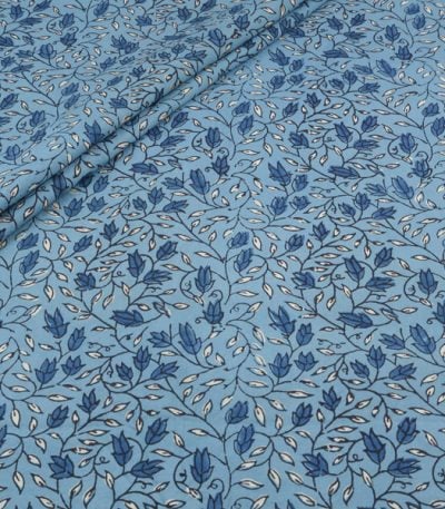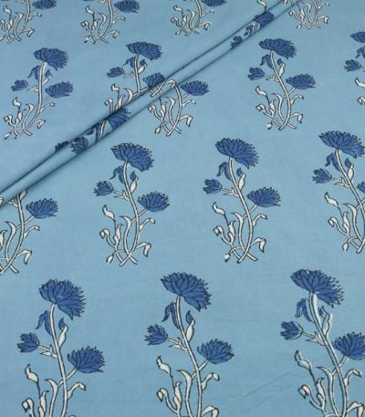 Blue – Neel Phool Bageecha Ajrakh Cotton Blockprint Fabric