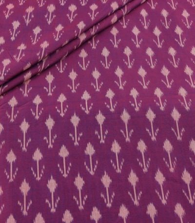 Royal Plum Purple Mercerised Fine Handloom Ikkat Tie-Dye Pure Soft Cotton Fabric