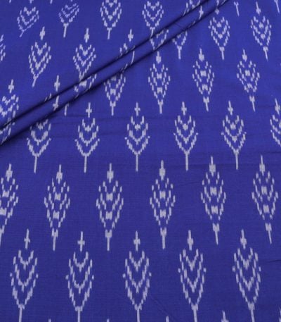 Prussian Blue Mercerised Fine Handloom Ikkat Tie-Dye Pure Soft Cotton Fabric