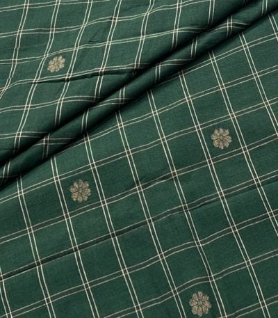 Hunter Green Checkered Woven Design Flowy HandLoom Pure Soft Cotton Fabric