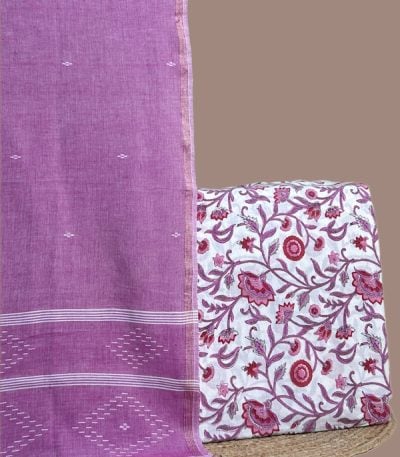 White – 2pc Handloom Cotton Dupatta and Blockprinted Soft Cotton Top Set