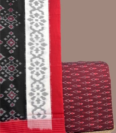 Maroon – 2pc Ikkat Cotton Dupatta and Handloom Soft Ikkat Cotton Top Fabric Set