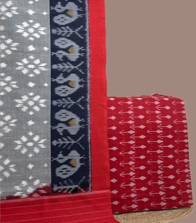 Red – 2pc Ikkat Cotton Dupatta and Handloom Soft Ikkat Cotton Top Fabric Set
