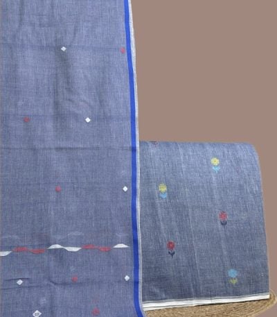 Blue – 2pc Handloom Cotton Dupatta and Handloom Woven Design Top Fabric Set