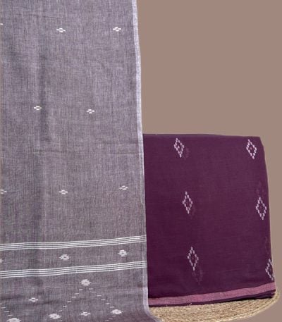 Purple – 2pc Handloom Cotton Dupatta and Handloom Woven Design Top Fabric Set
