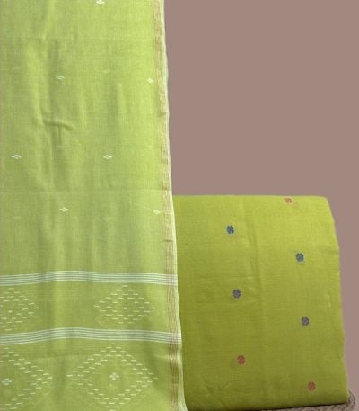Green – 2pc Handloom Woven Design Cotton Top and Handloom Soft Cotton Bottom Fabric Set