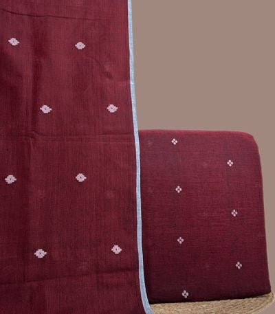 Maroon – 2pc Handloom Cotton Dupatta and Handloom Woven Design Top Fabric Set