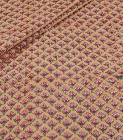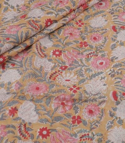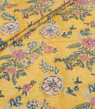 Dessert Sand Yellow Floral Handblock Printed 100% Pure Soft Cotton Fabric