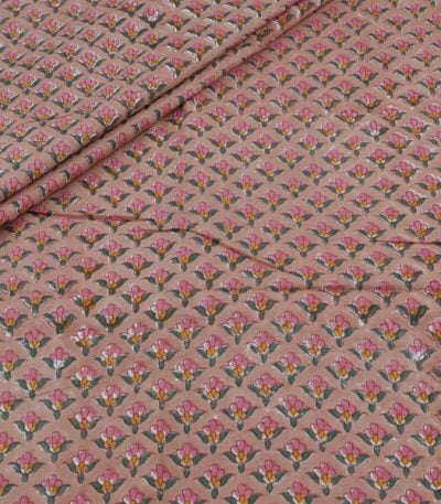 Dusty Rose Pink Floral Handblock Printed 100% Pure Soft Cotton Fabric