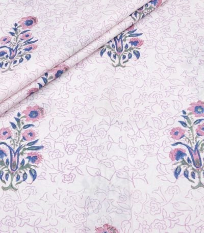 White Floral Handblock Printed 100% Pure Soft Cotton Fabric