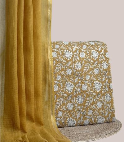 Yellow – 2pc Kota Doria Dupatta and Bagru HandBlock Pure Cotton Set