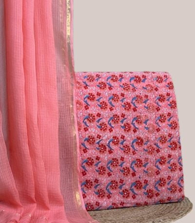Pink – 2pc Kota Doria Dupatta and Pure Soft Cotton Blockprint Top Fabric Set