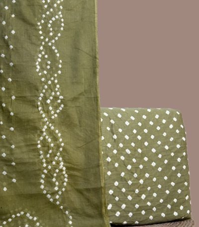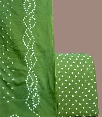 Green – 2pc Bandhani Cotton Dupatta with Cotton Bandhani Top Fabric Set