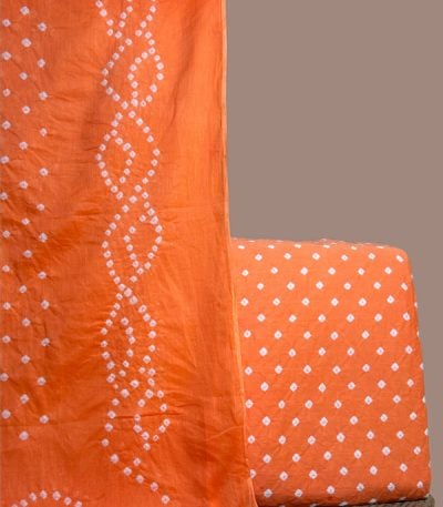 Orange – 2pc Bandhani Cotton Dupatta with Cotton Bandhani Top Fabric Set
