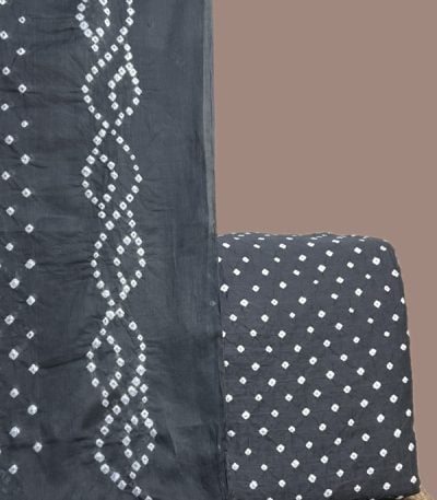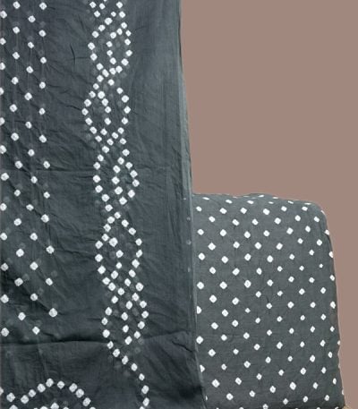 Gray – 2pc Bandhani Cotton Dupatta with Cotton Bandhani Top Fabric Set