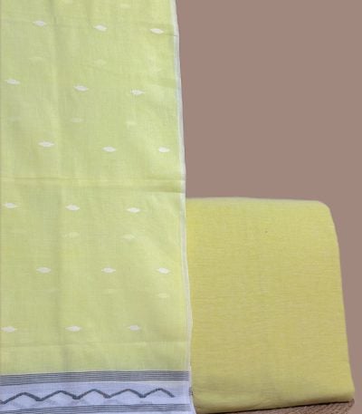 Yellow – 2pc Handloom Cotton Dupatta and Handloom Soft Cotton Top Fabric Set