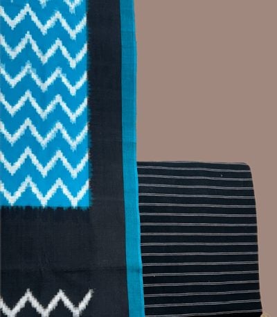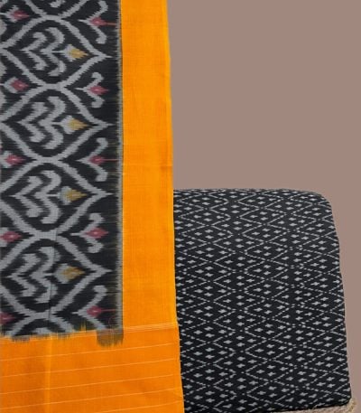 Black – 2pc Ikkat Cotton Dupatta and Handloom Soft Ikkat Cotton Top Fabric Set