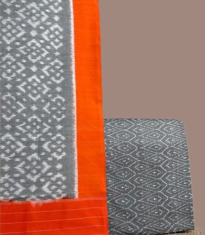 Gray – 2pc Ikkat Cotton Dupatta and Handloom Soft Ikkat Cotton Top Fabric Set