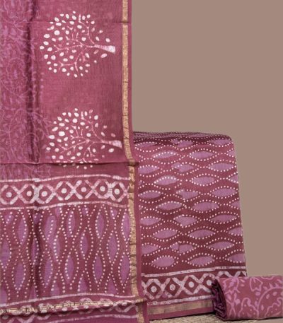 Pink – 3pc Chanderi Silk Dupatta and Top Fabric with Cotton Blockprint Bottom Fabric Set
