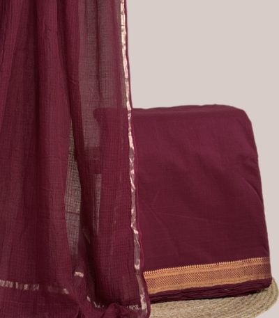 Maroon – 2pc Kota Doria Dupatta and Mangalgiri Zari Border Handwoven Pure Cotton Set