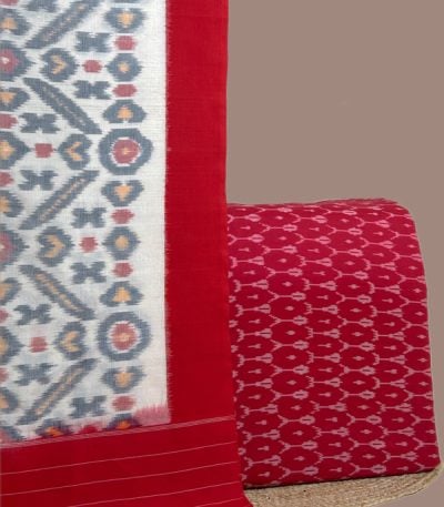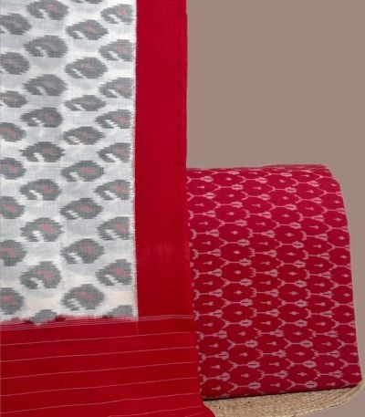 Red – 2pc Ikkat Cotton Dupatta and Handloom Soft Ikkat Cotton Top Fabric Set