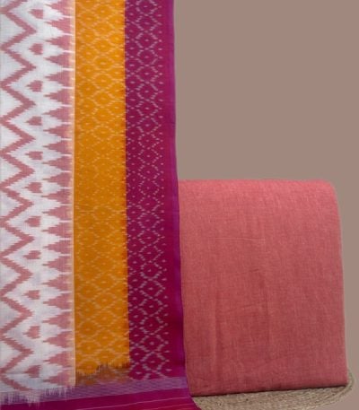 Orange – 2pc Ikkat Cotton Dupatta and Handloom Soft Cotton Top Fabric Set