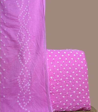Pink – 2pc Bandhani Cotton Dupatta with Cotton Bandhani Top Fabric Set