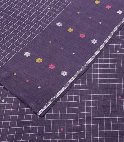 Royal Purple Handloom Intricate Border Flowy HandLoom Pure Soft Cotton Fabric