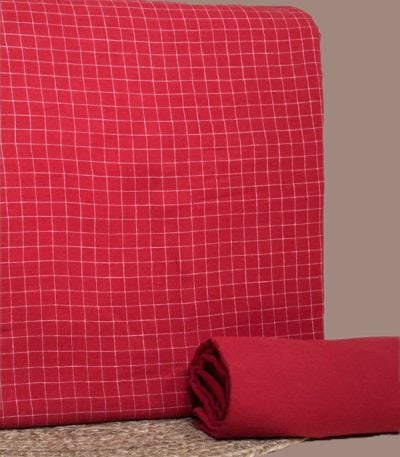 Red – 2pc Handloom Checkered Cotton Top and Handloom Bottom Fabric Set