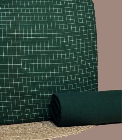Green – 2pc Handloom Checkered Cotton Top and Handloom Bottom Fabric Set