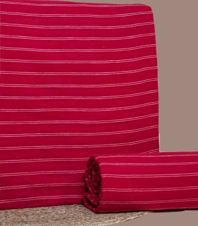 Red – 2pc Handloom Stripes Cotton Top and Handloom Bottom Fabric Set