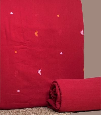 Red – 2pc Handloom Woven Design Cotton Top and Handloom Soft Cotton Bottom Fabric Set