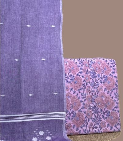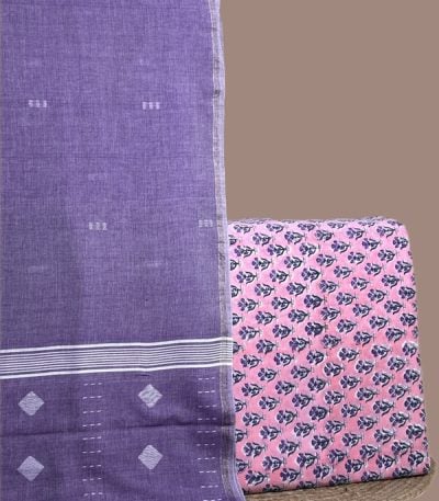 Purple – 2pc Handloom Cotton Dupatta and Blockprinted Soft Cotton Top Set