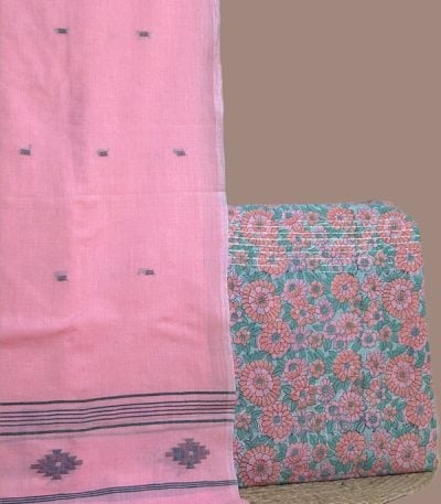 Pink – 2pc Handloom Cotton Dupatta and Blockprinted Soft Cotton Top Set