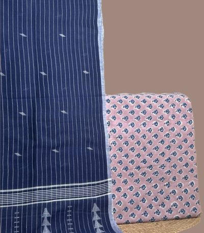 Blue – 3pc Handloom Soft Cotton Dupatta with Pure Soft Cotton Top & Bottom Set